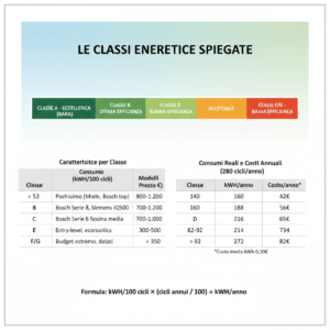 - Efficienza energetica: Cerca modelli con classificazione energetica elevata (A+++ o superiore) per risparmiare sulla bolletta e rispettare l’ambiente.