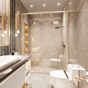 I moderni sanitari pongono grande enfasi sul risparmio idrico, con sistemi di scarico a doppio flusso per i WC e aeratori per i lavabi che riducono significativamente il consumo d’acqua.